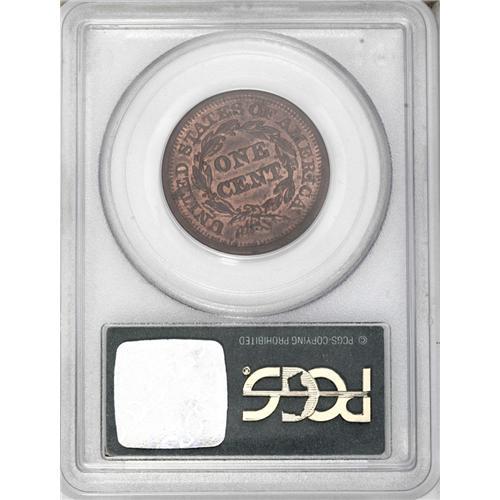 <B>1853<1C> MS64 Red and Brown PCGS.</B></I> N-11. Low R.2. This boldly struck near-Gem displays ample orange-red luster, although the fields, cheek, and neck have toned gray-brown. No marks are evident. Housed in a green label holder. EAC 63.