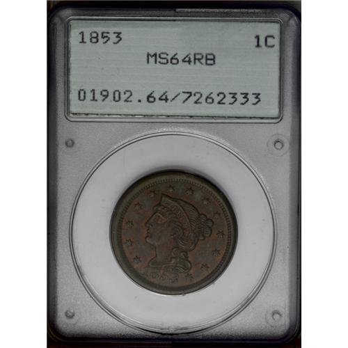 1853 1C MS64 Red and Brown PCGS. N-19, R.1. Grellman D