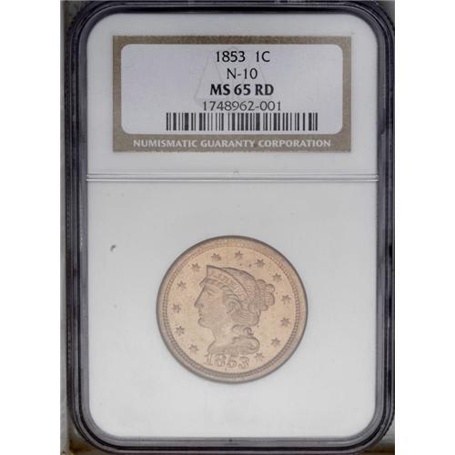 1853 1C MS65 Red NGC. N-10, R.1. Die State B. Lovely o