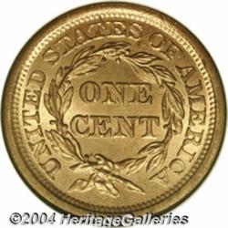 <table><tr><td><table><tr><td>1853 1C MS65 Red NGC. N-10, R.1. Die State B. Lovely orange-gold color and potent cartwheel luster provide imposing eye appeal. Well struck aside from a couple of star centrils. A handling mark on the 18 in the date and a few miniscule carbon flecks preclude a finer grade. NGC has certified 11 examples as Newcomb-10, but among these only the present Gem has full Red color. <BR><BR><B>Important notice:</B> Heritage usually auctions material at the rate of 200-250 lots per hour. On some occasions eBay Live bid software or the Internet may not be able to keep up with the pace of the auction. We recommend placing a realistic absentee bid now as insurance to avoid disappointment. Occasionally the auctioneer may eliminate or reject an eBay Live bid, and the auctioneer may also reopen a lot after the close of the eBay live bidding (usually because we missed an audience bid), and may reject your bid even if it shows you as the winning bidder. By bidding via eBay Live, you agree that Heritage may award the lot to another bidder at its sole discretion under the circumstances described above or any other reasonable circumstances. Since eBay bids are not shown to us until we open the lot on the floor, we treat those bids just like floor bids. In most cases the floor responds before the eBay bid is presented to us, due to Internet lag time, so for consistency we have made it a policy that floor bids are always considered first over tie eBay live bids. Also please note that all Heritage lots purchased through eBay Live carry a 20% Buyer's Premium. Please make sure you read the Terms and Conditions before you bid. <BR><BR><B>IMPORTANT ANNOUNCEMENT ABOUT RESERVES:</B> Heritage now divulges all reserves on its web site 7 days before every auction. If you want to know whether the reserve on this lot has been met, and if not, what the reserve amount is, please visit this lot page on the HeritageCoin.com web site, or email: bid@HeritageGalleries.com </span></font></td></tr></table></td></tr></table>