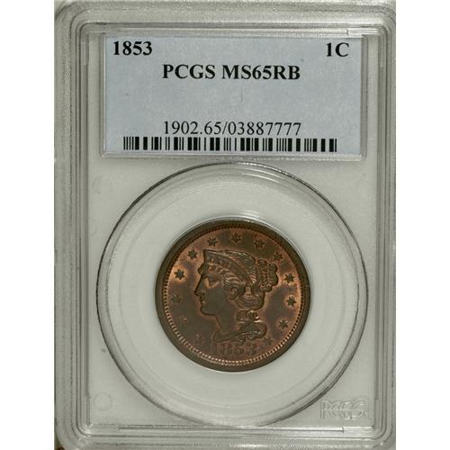 1853 1C MS65 Red and Brown PCGS. N-25, R.1. The revers