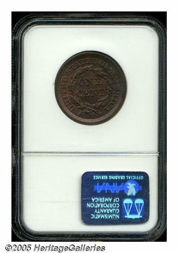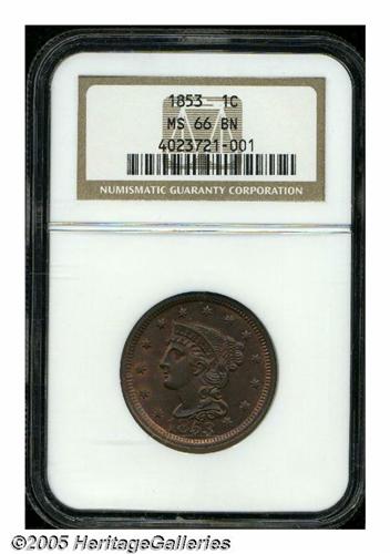 1853 1C MS66 Brown NGC. N-18, R.1. Traces of recu