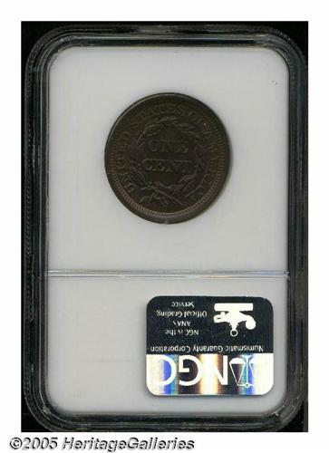 1853 1C MS66 Brown NGC. N-25, R.1. The obverse of