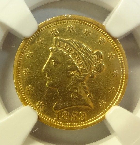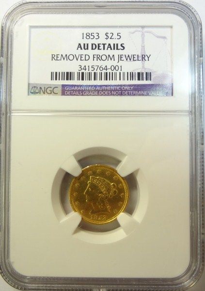 1853 $2 1/2 Gold NGC AU removed from jewelry