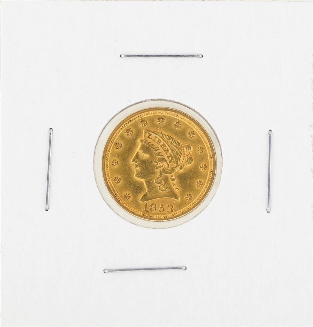 One 1853 $2 1-2 Liberty Gold Coin AU.