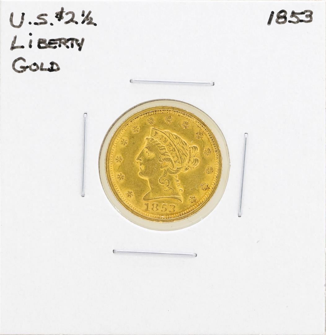 One 1853 $2 1/2 Liberty Head Quarter Eagle Gold Coin.
