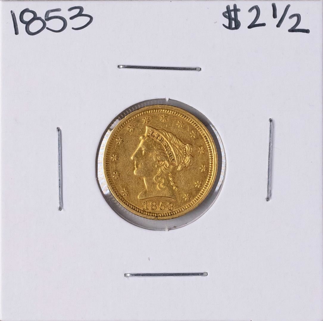 One 1853 $2 1/2 Liberty Head Quarter Eagle Gold Coin.