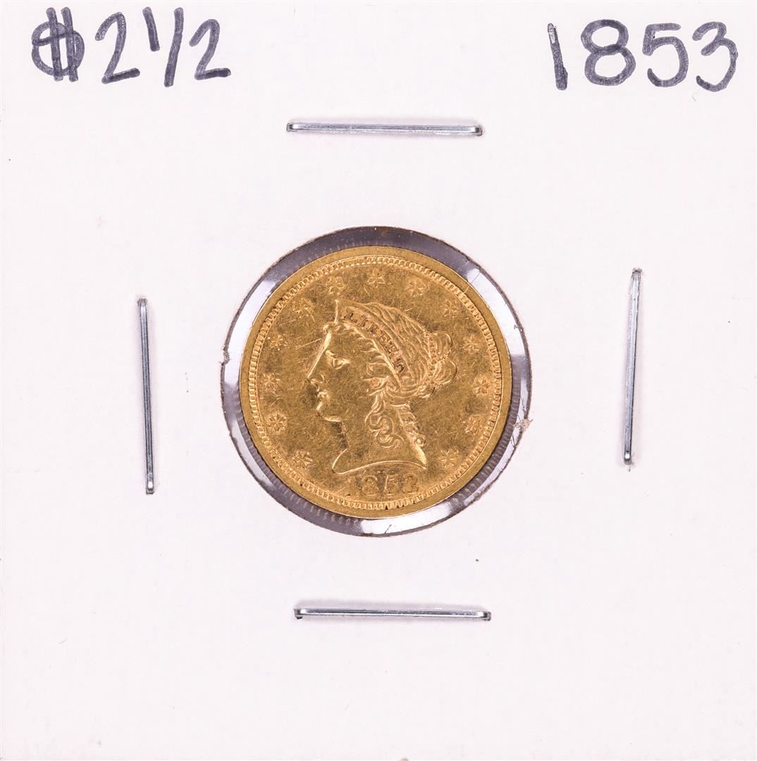 One 1853 $2 1/2 Liberty Head Quarter Eagle Gold Coin.
