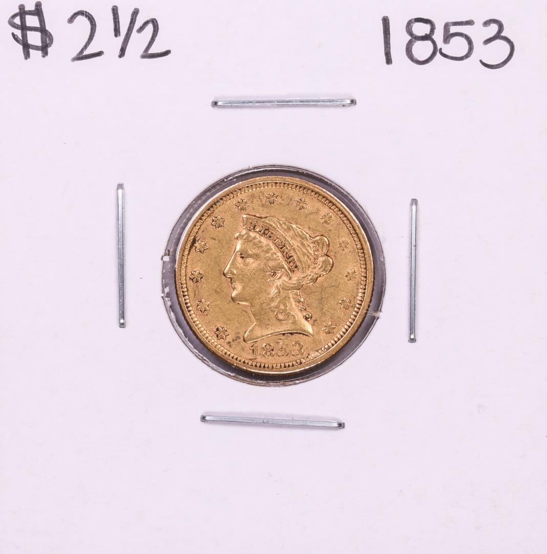 One 1853 $2 1/2 Liberty Head Quarter Eagle Gold Coin.