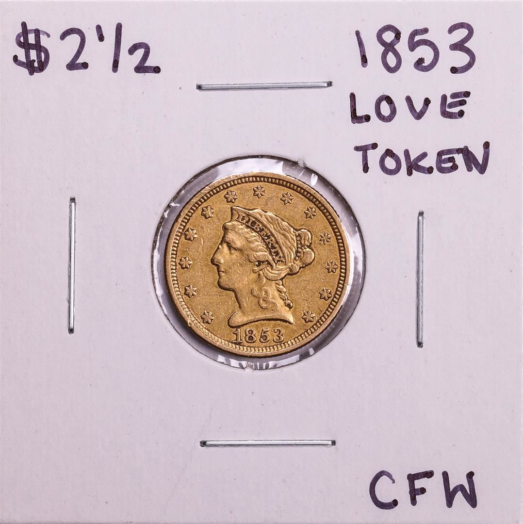 1853 $2 1/2 Liberty Head Quarter Eagle Gold Love Token Coin "CFW"