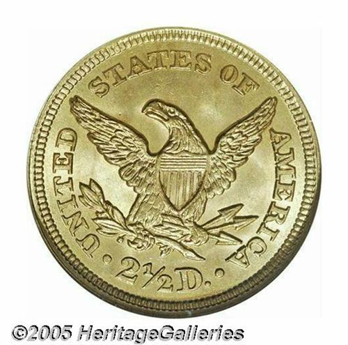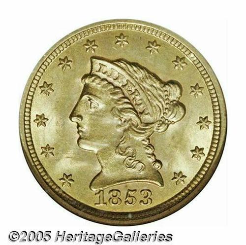 1853 $2 1/2 MS65 NGC. Frosty and attractive, with