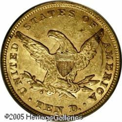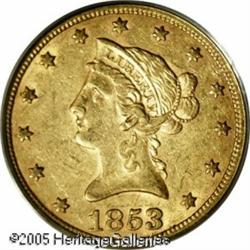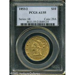 1853/2 $10 AU55 PCGS. A scarce coin in high grade,