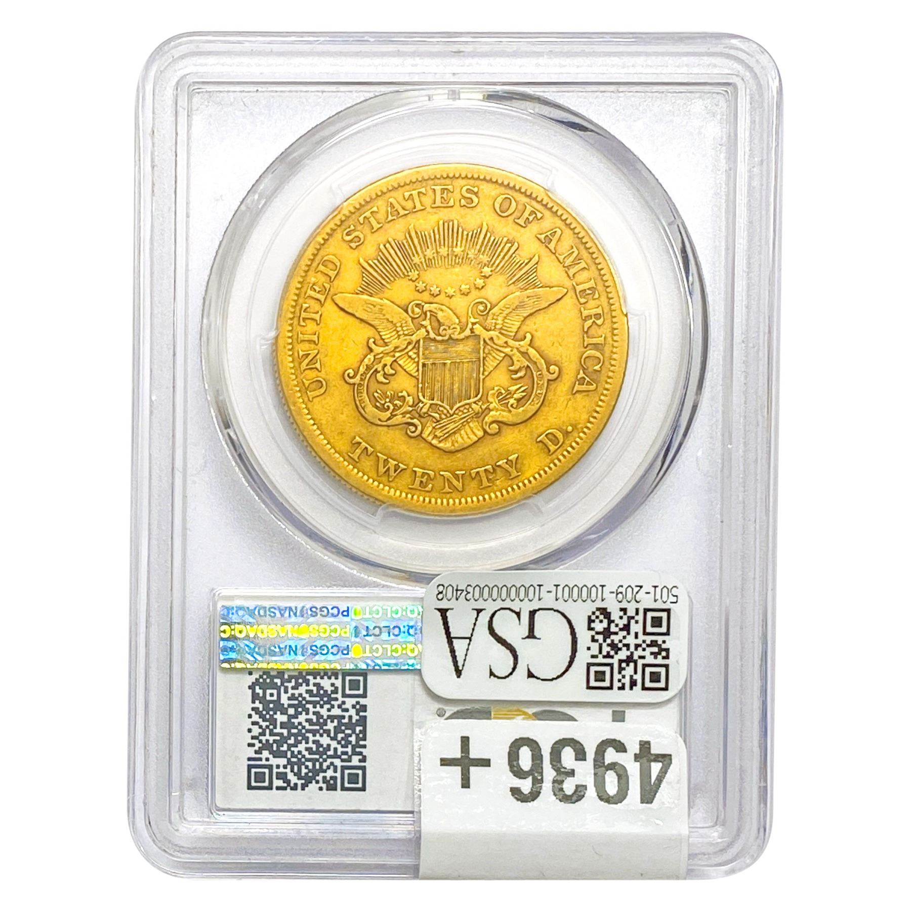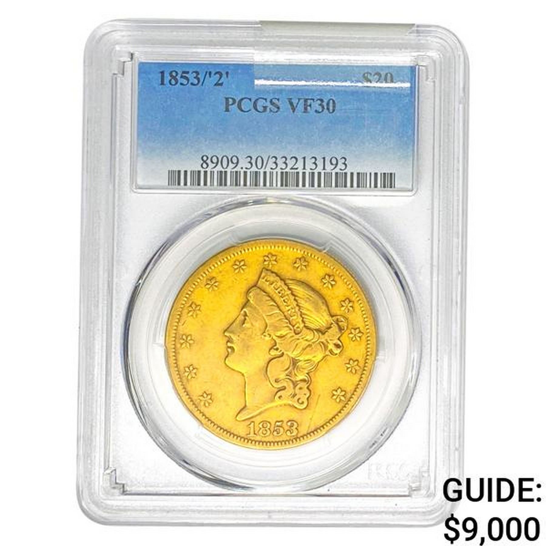1853/'2' $20 Gold Double Eagle PCGS VF30