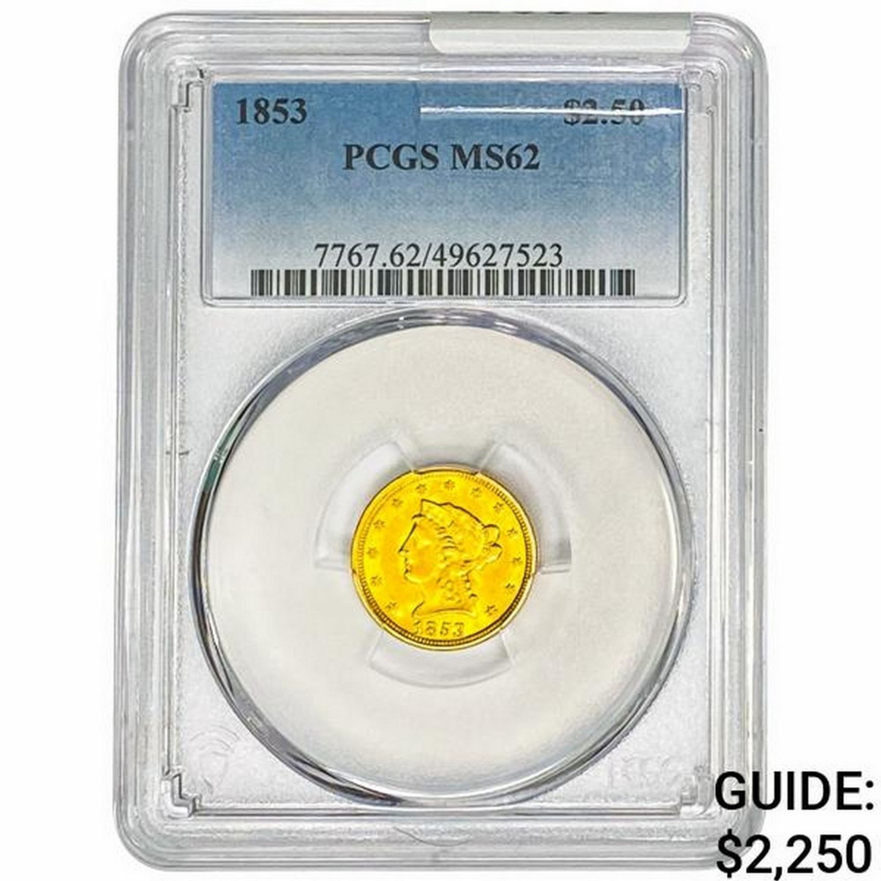 1853 $2.50 Gold Quarter Eagle PCGS MS62