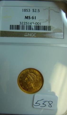 1853 $2.50 Liberty Gold Coin NGC MS 61