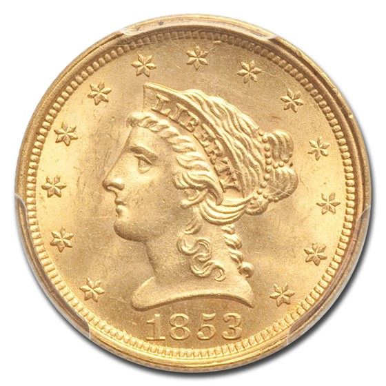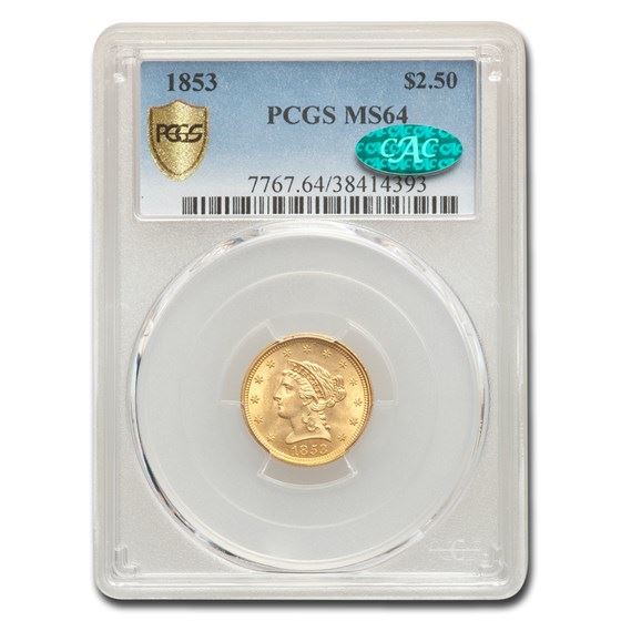 One piece 1853 $2.50 Liberty Gold Quarter Eagle MS-64 PCGS CAC