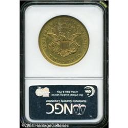 1853 $20 AU55 NGC. Breen-7161. Not the 1853/2 vari <B>1853 $20 AU55 NGC.</B></I> Breen-7161. Not the 1853/2 variety, but the 1 and 3 in the date are widely repunched. Well struck and lightly worn with pleasing luster and a few noticeable abrasions. <BR><BR><B>Important notice:</B> Heritage usually auctions material at the rate of 200-250 lots per hour. On some occasions eBay Live bid software or the Internet may not be able to keep up with the pace of the auction. We recommend placing a realistic absentee bid now as insurance to avoid disappointment. Occasionally the auctioneer may eliminate or reject an eBay Live bid, and the auctioneer may also reopen a lot after the close of the eBay live bidding (usually because we missed an audience bid), and may reject your bid even if it shows you as the winning bidder. By bidding via eBay Live, you agree that Heritage may award the lot to another bidder at its sole discretion under the circumstances described above or any other reasonable circumstances. Since eBay bids are not shown to us until we open the lot on the floor, we treat those bids just like floor bids. In most cases the floor responds before the eBay bid is presented to us, due to Internet lag time, so for consistency we have made it a policy that floor bids are always considered first over tie eBay live bids. Also please note that all Heritage lots purchased through eBay Live carry a 20% Buyer's Premium. Please make sure you read the Terms and Conditions before you bid. This lot is being auctioned in conjunction with a live floor auction by Heritage Galleries & Auctioneers. All final auction and invoice information will be supplied by Heritage Galleries & Auctioneers, and all other information should be considered preliminary. Lot:6834