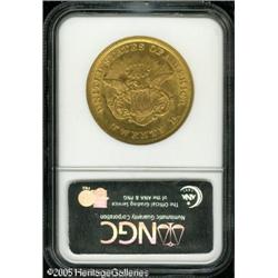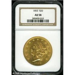 <B>1853 $20 AU58 NGC.</B></I> This appears to be a Breen-7160 with repunching of seen on the inner curves of the 3. The fields are still highly lustrous and abrasions are at a bare minimum.<BR><I>From The Richard J. Chouinard Collection of United States Coins, Part Two.</B></I> Lot:8939