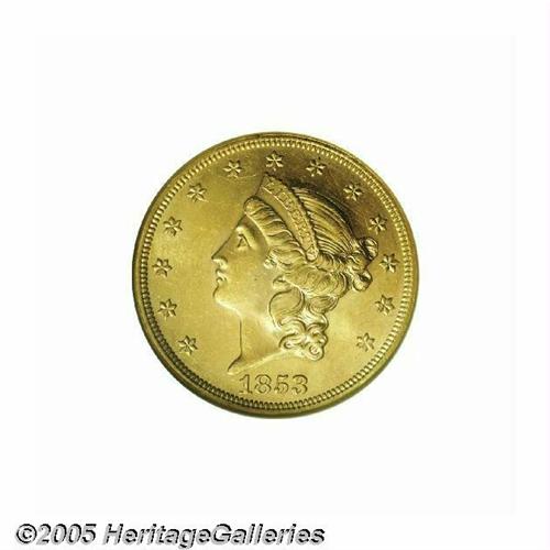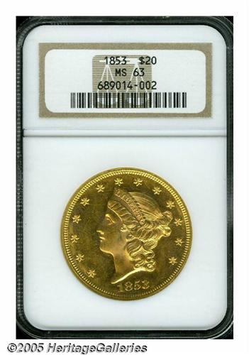 1853 $20 MS63 NGC. In circulated grades, the 1853