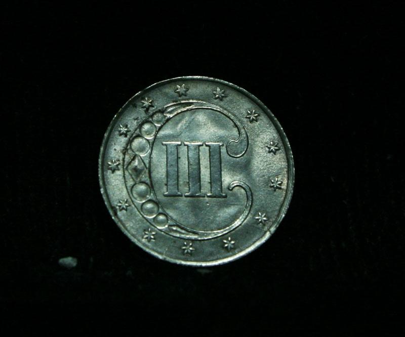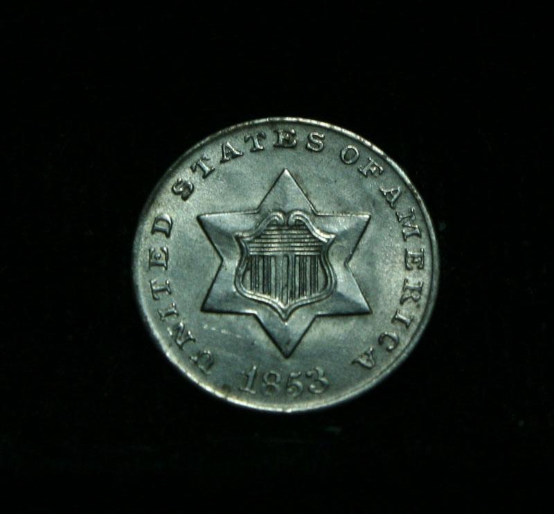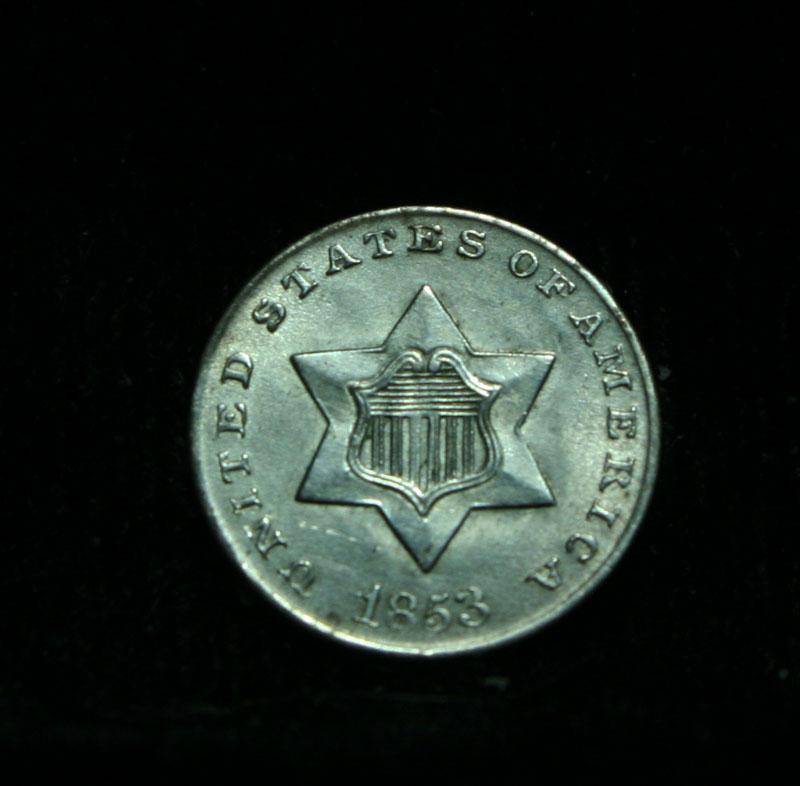 A nice example of this scarce issue. The 3c silver was originally introduced when the postal rates were dropped from 5 cents to 3 cents. While there were circulating pennies and half pennies, copper did not circulate much in the south as they did not think much of copper and demanded silver or gold in their coinage. So the bill reducing the postal rates also called for the introduction of a 3 cent silver piece to facilitate postal payments. The Wholesale Greysheet lists ms65 at $655. Estimated Value $675