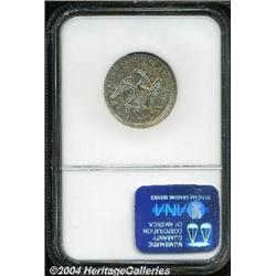 <B>1853/4<25C> Arrows and Rays AU58 NGC.</B></I> FS-003. A well struck slate-gray piece that has slight friction on the knee and breast to deny a Mint State assignment. A problem-free example of this rare variety, which comprises only a tiny fraction of the 1853 Arrows and Rays production. The NGC holder has a slender vertical crack and a small piece missing from the lower left border, neither of which affects its integrity. Population: 4 in 58, 9 finer (9/04). <BR><BR><B>Important notice:</B> Heritage usually auctions material at the rate of 200-250 lots per hour. On some occasions eBay Live bid software or the Internet may not be able to keep up with the pace of the auction. We recommend placing a realistic absentee bid now as insurance to avoid disappointment. Occasionally the auctioneer may eliminate or reject an eBay Live bid, and the auctioneer may also reopen a lot after the close of the eBay live bidding (usually because we missed an audience bid), and may reject your bid even if it shows you as the winning bidder. By bidding via eBay Live, you agree that Heritage may award the lot to another bidder at its sole discretion under the circumstances described above or any other reasonable circumstances. Since eBay bids are not shown to us until we open the lot on the floor, we treat those bids just like floor bids. In most cases the floor responds before the eBay bid is presented to us, due to Internet lag time, so for consistency we have made it a policy that floor bids are always considered first over tie eBay live bids. Also please note that all Heritage lots purchased through eBay Live carry a 20% Buyer's Premium. Please make sure you read the Terms and Conditions before you bid.
