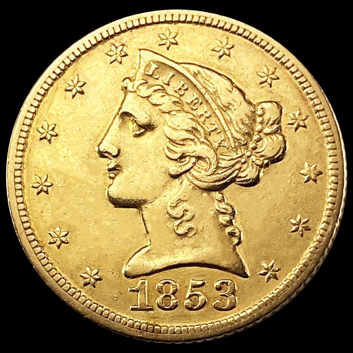 1853 $5 Gold Half Eagle CLOSELY UNCIRCULATED