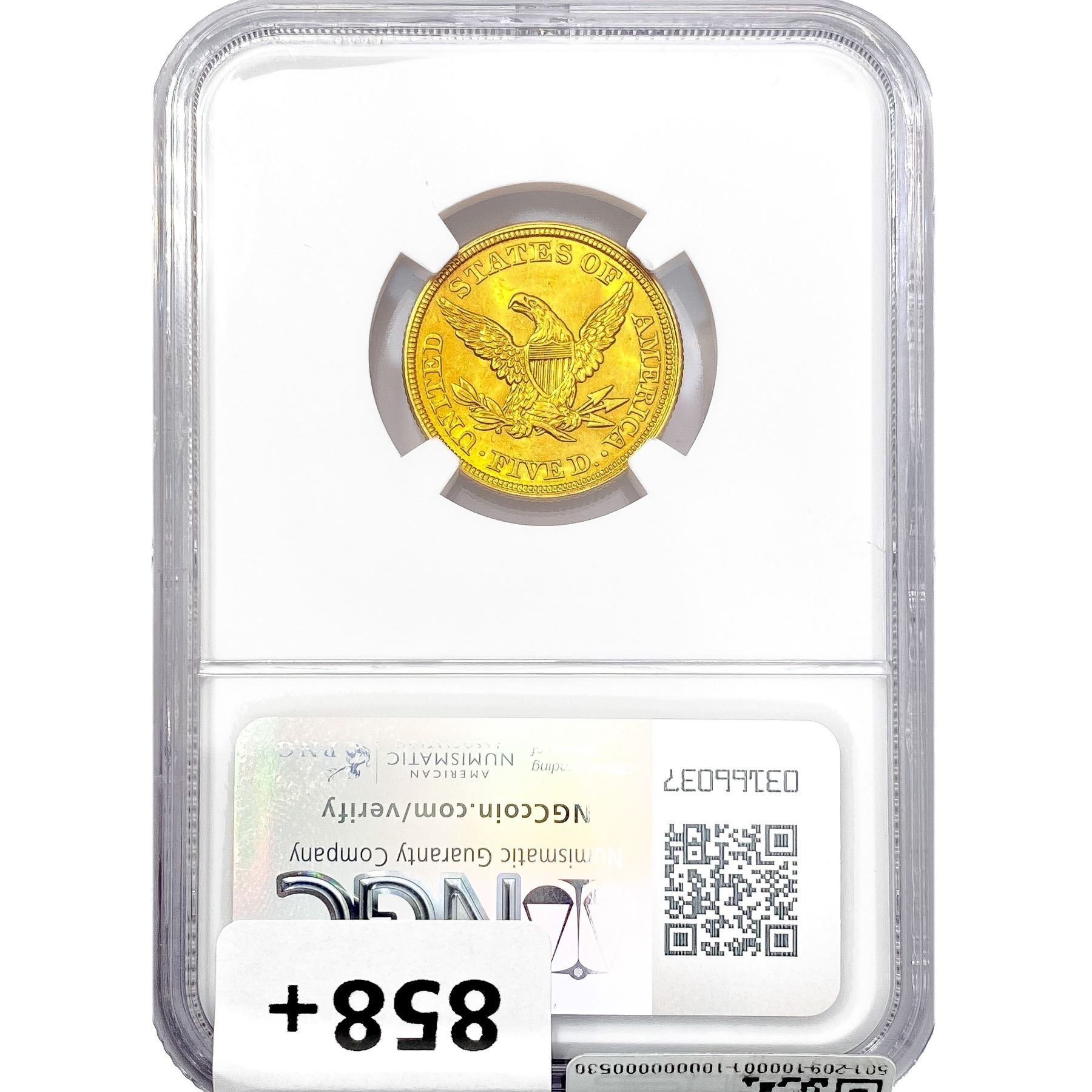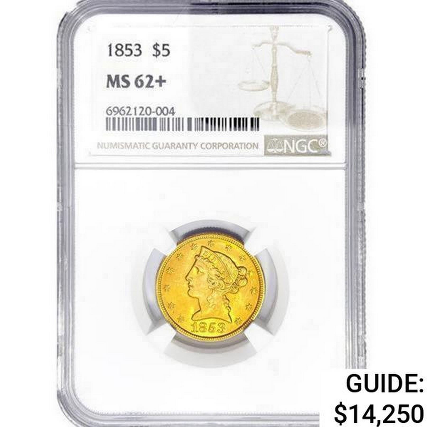 1853 $5 Gold Half Eagle NGC MS62+