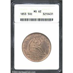 1853 50C Arrows and Rays MS62 ANACS. Sharply struck and toned with deeper color on the obverse than.