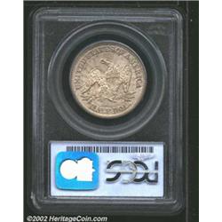 1853 50C Arrows and Rays MS64 PCGS. There are whispers of olive color here and there, but the outwar