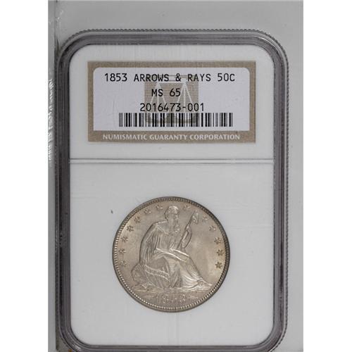 1853 50C Arrows and Rays MS65 NGC. Beginning in 1848,