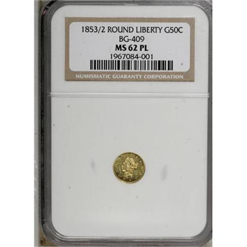<B>1853/2 50C BG-409 MS62 Prooflike NGC.</B></I> NGC Census: (0/0). PCGS Population (0/0). (#710445)<BR><BR><b>Shipping:</b> Coins & Currency (<a target="_blank" href="http://www.heritageauctions.com/common/shipping.php">view shipping information</a>)