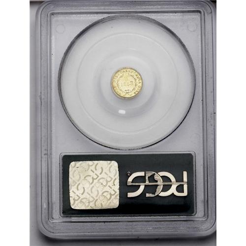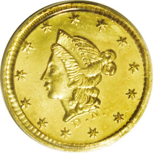 <B>1853<50C> Liberty Round 50 Cents, BG-409, R.3, MS63 PCGS.</B></I> A remarkable specimen for the grade with bright greenish-gold surfaces. Both sides of this lovely example are fully prooflike. The obverse has several small lintmarks, suggesting careful treatment of the die before this example was struck. Heavy die striations or flowlines along the right reverse border were created during the coining process.