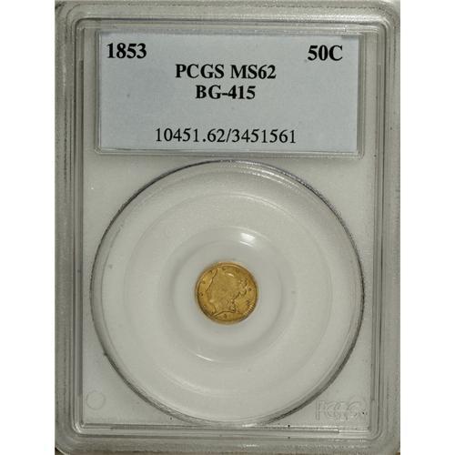 1853 50C Liberty Round 50 Cents, BG-415, Low R.5, MS