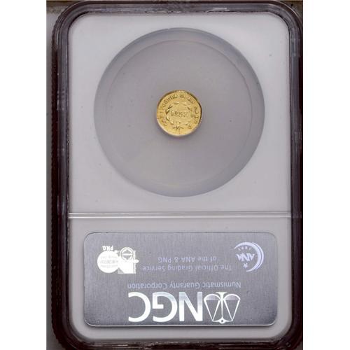 <B>1853<50C> Liberty Round 50 Cents, BG-421, R.4, MS62 NGC.</B></I> A clean pale-gold Period One piece with a single perceptible mark, on the field near the forehead. The D initial indicates M. Deriberpie, a San Francisco engraver.