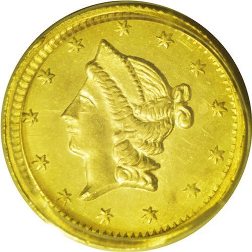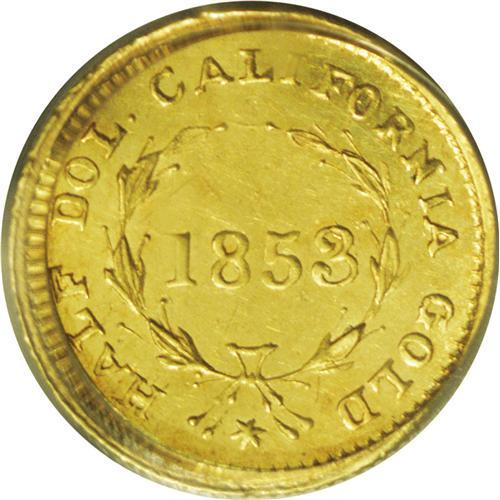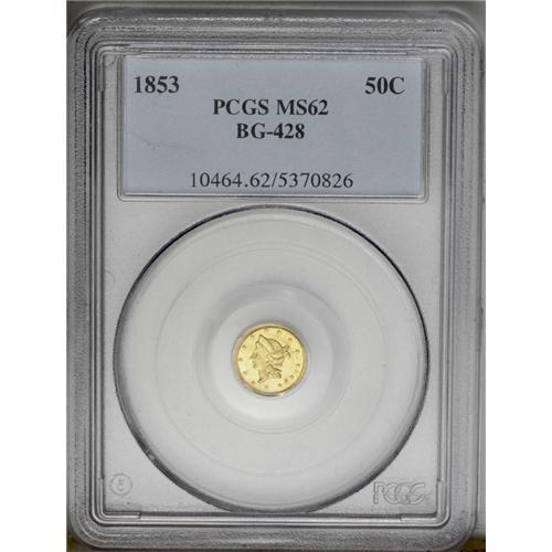 1853 50C Liberty Round 50 Cents, BG-428, R.3, MS62 PCG
