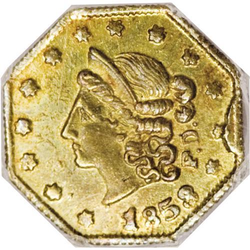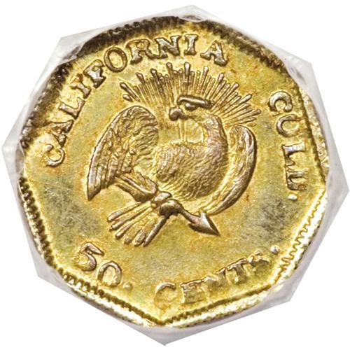 1853 50C Octagonal Liberty Peacock Reverse 50 Cents, B