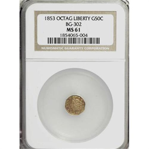 1853 50C Peacock Reverse 50 Cents, BG-302, Low