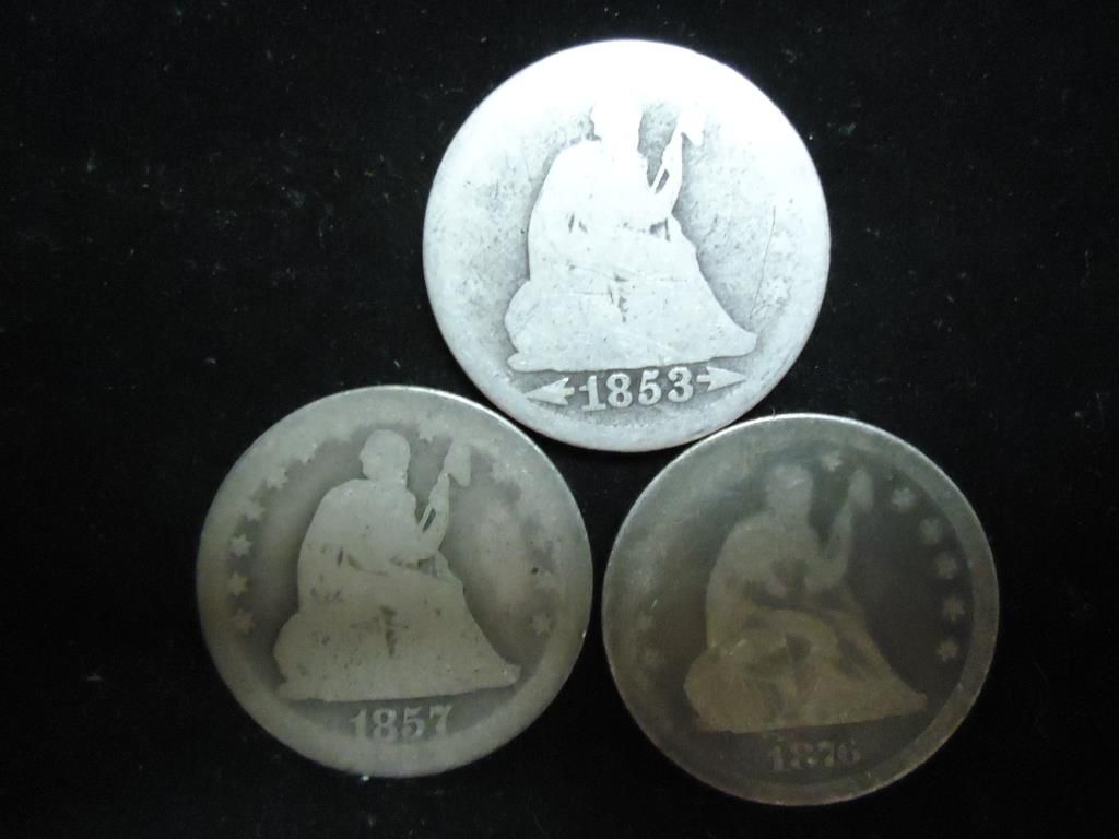 1853,57 & 76 SEATED LIBERTY QUARTERS