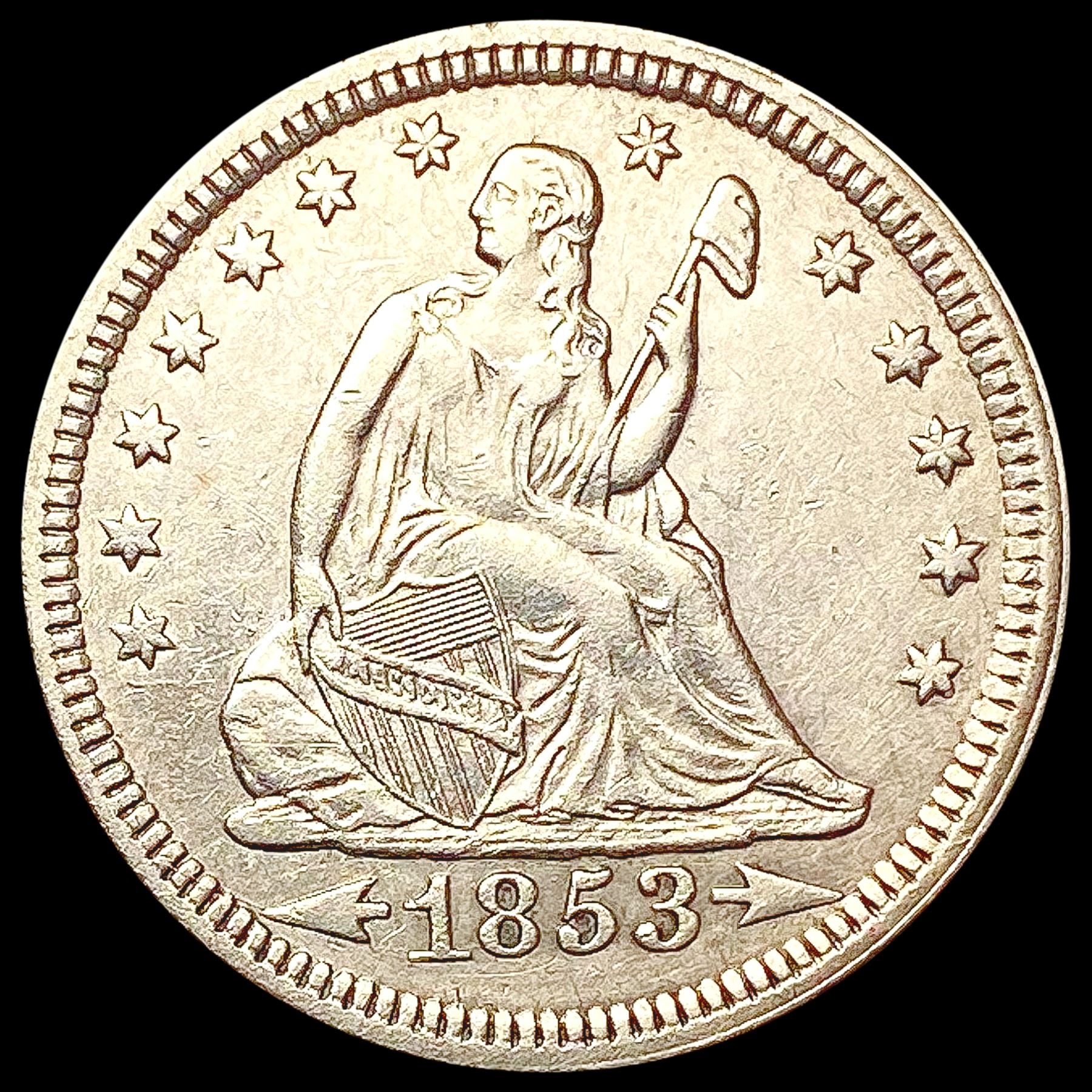 1853 A+R Seated Liberty Quarter CLOSELY UNCIRCULAT