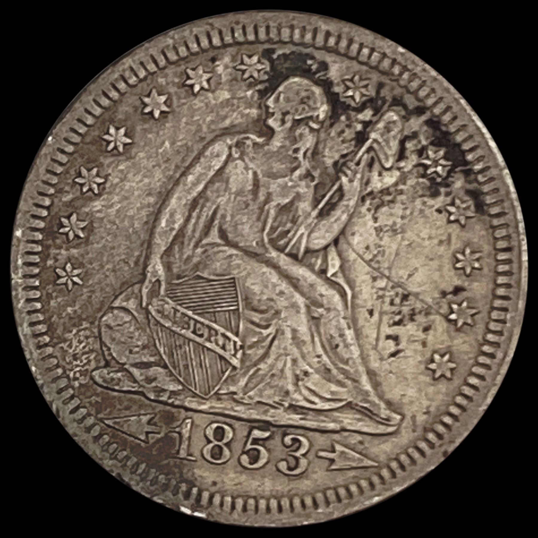 1853 A&R Seated Liberty Quarter CLOSELY UNC