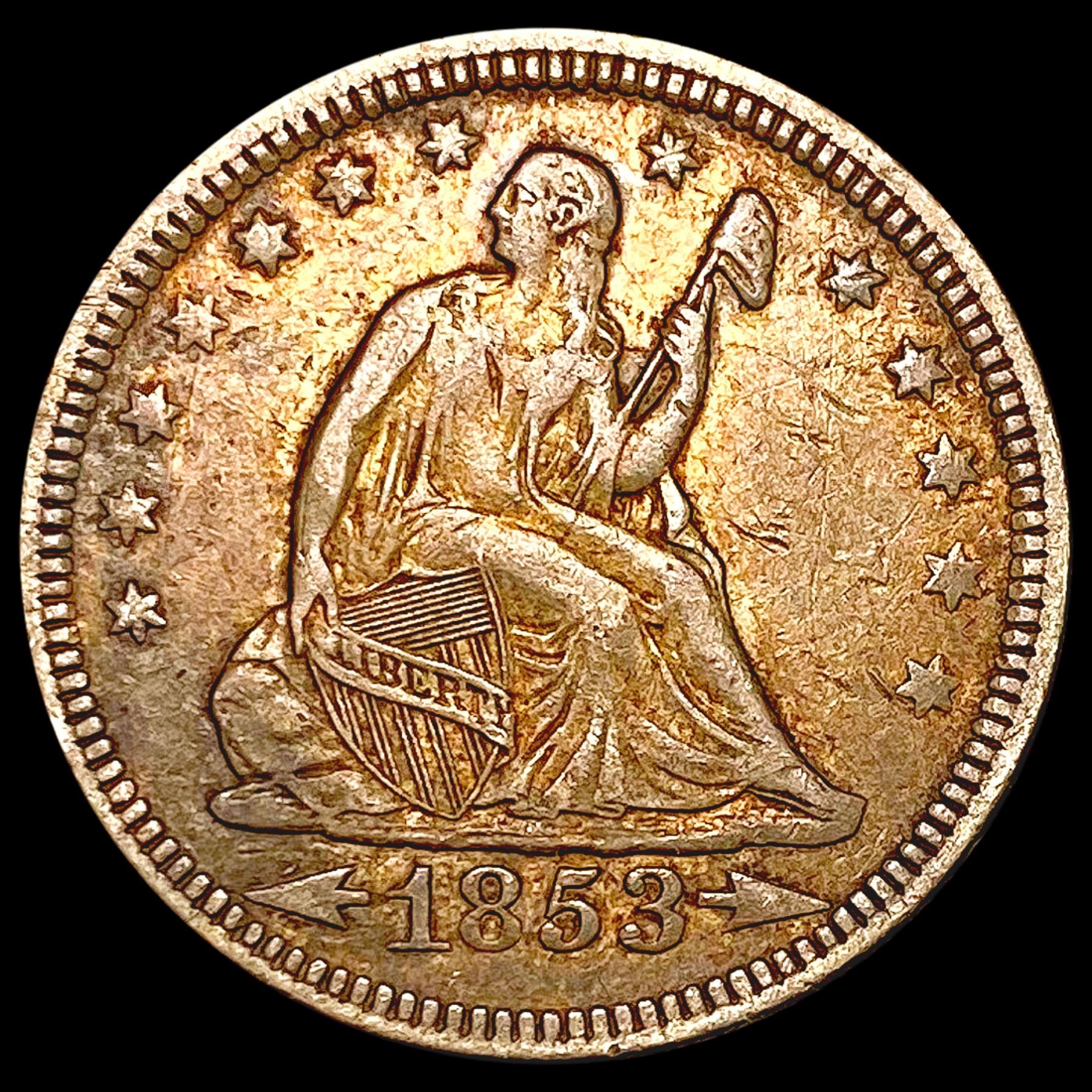 1853 ARR RAYS Seated Liberty Quarter LIGHTLY CIRCULATED