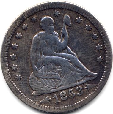 1853 ARROWS AND RAYS SEATED LIBERTY QUARTER-CIRC