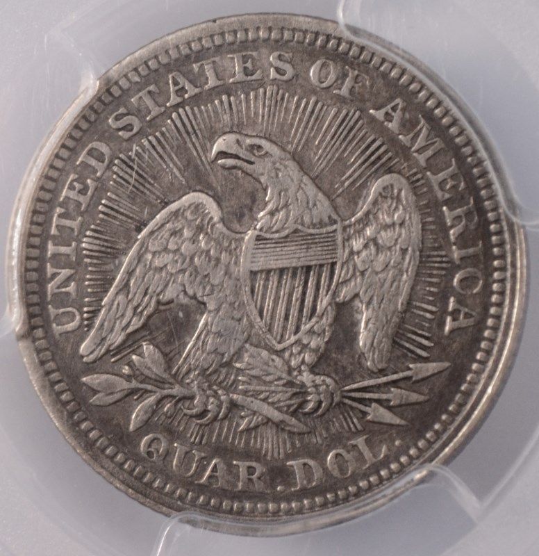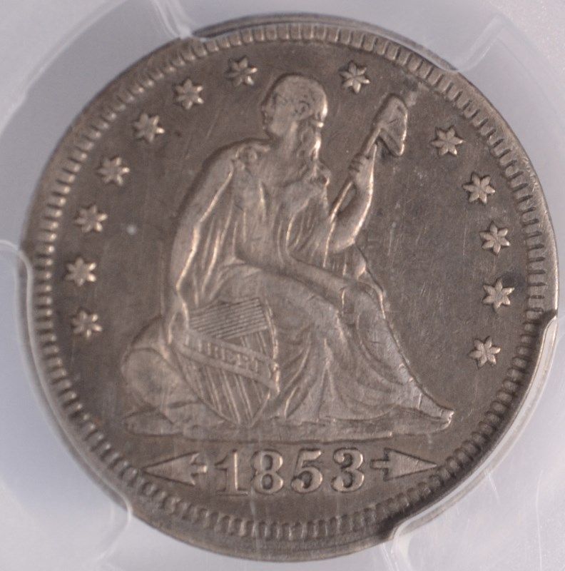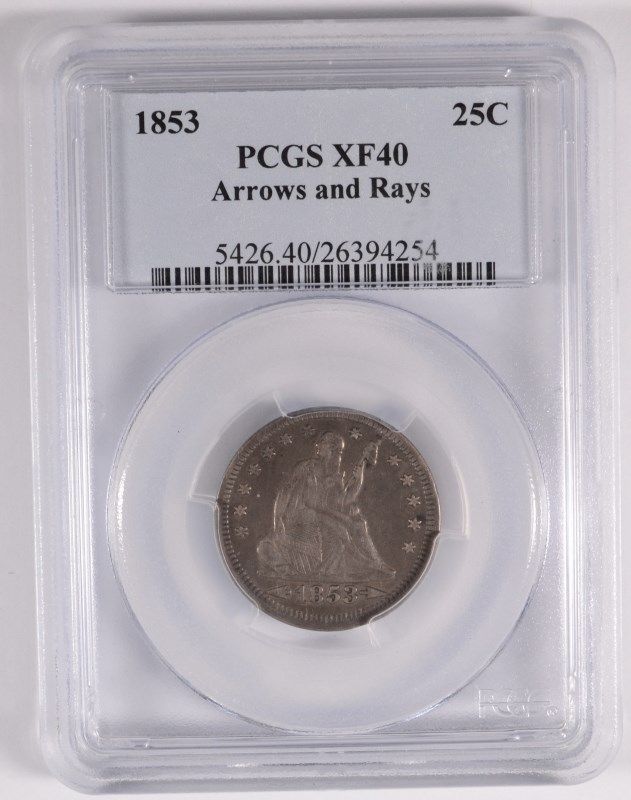 1853 ARROWS AND RAYS SEATED QUARTER, PCGS XF-40 NICE