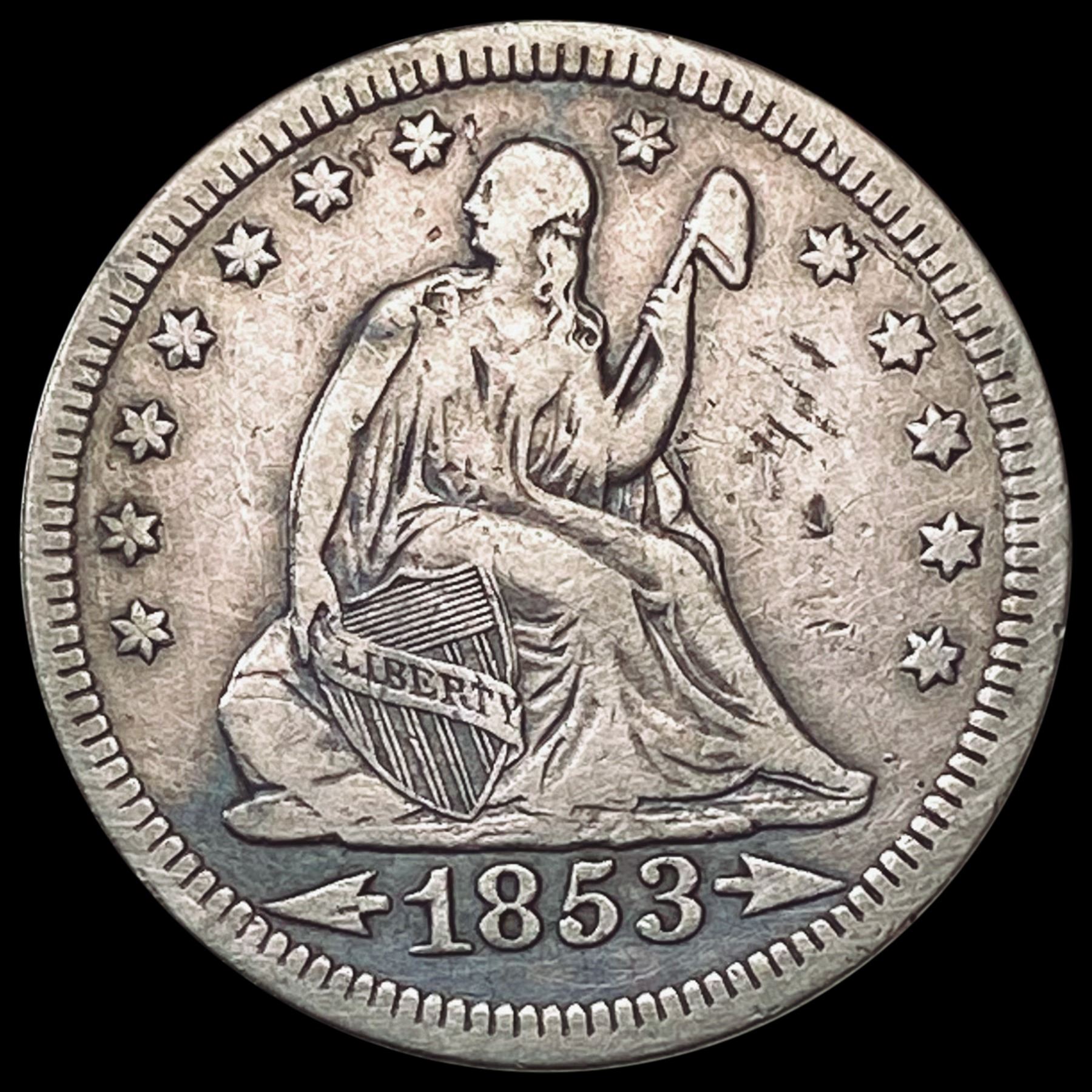 1853 ARROWS Seated Liberty Quarter LIGHTLY CIRCULATED