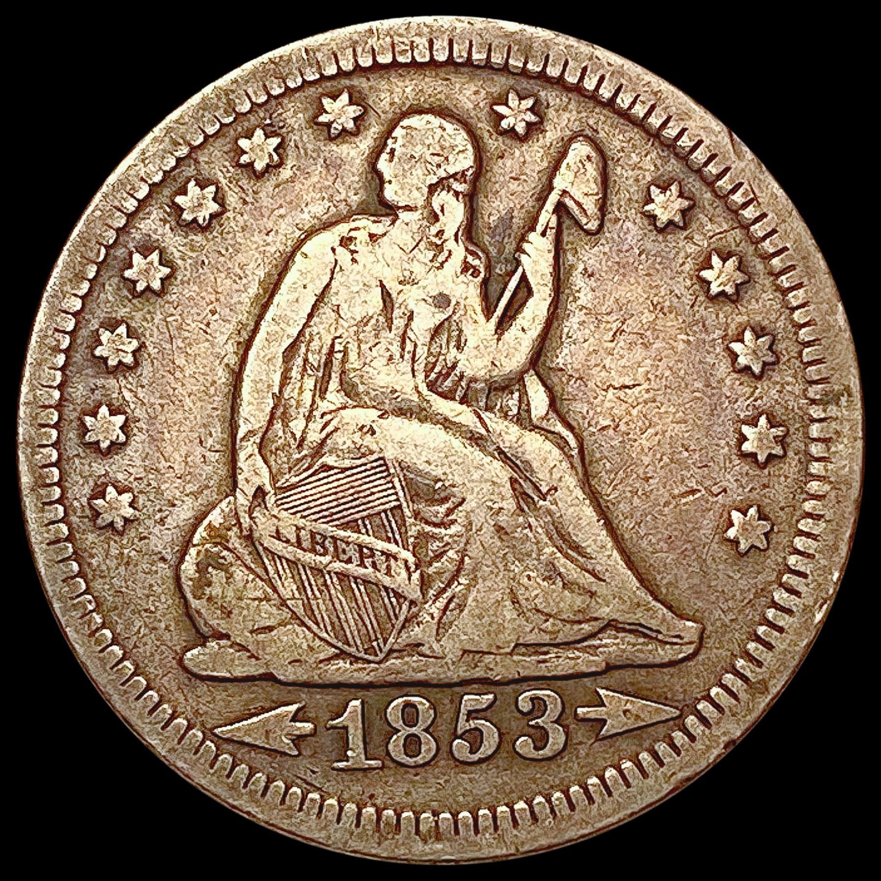 1853 Arr. Rays Seated Liberty Quarter ABOUT UNCIRCULATED