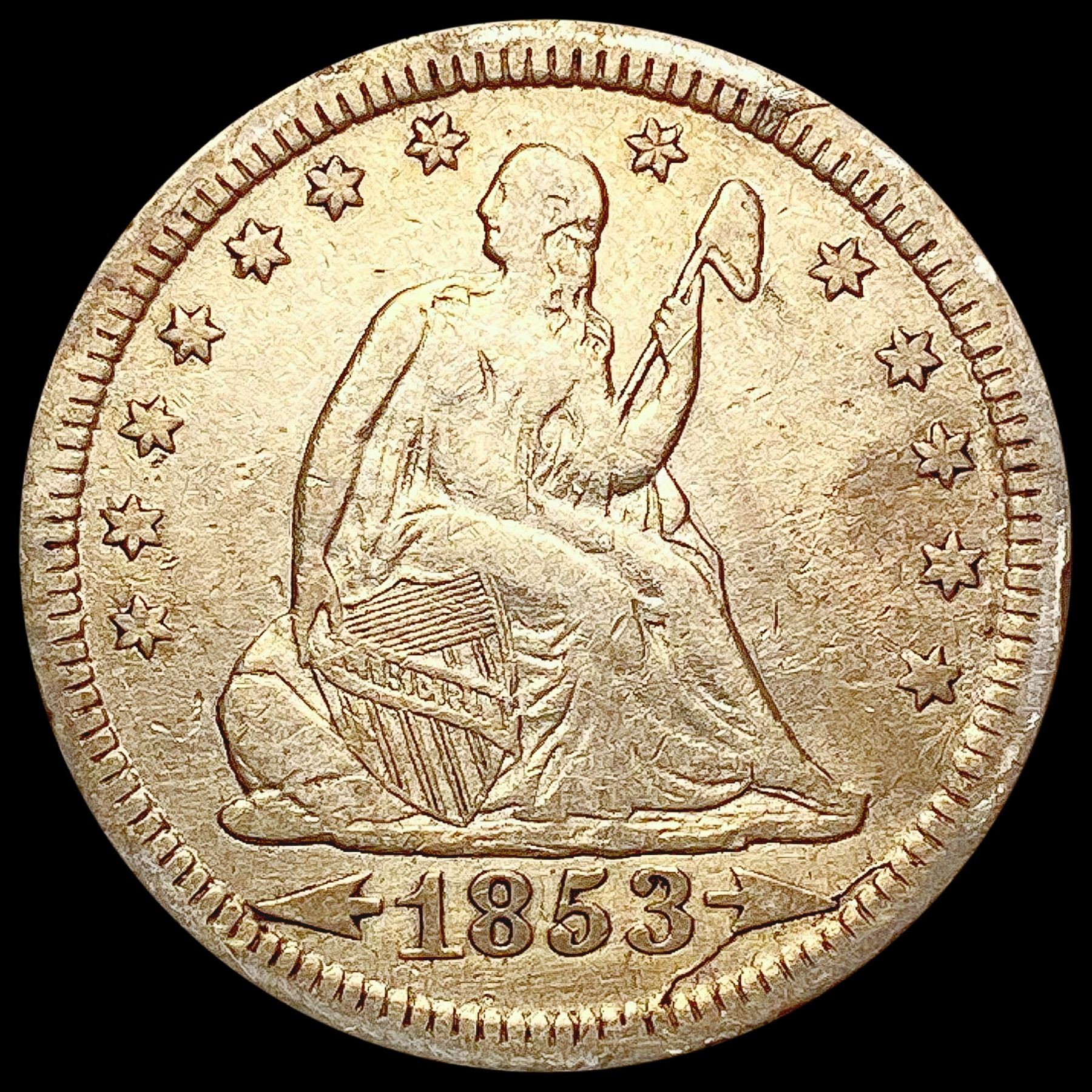 1853 Arr. Rays Seated Liberty Quarter ABOUT UNCIRCULATED