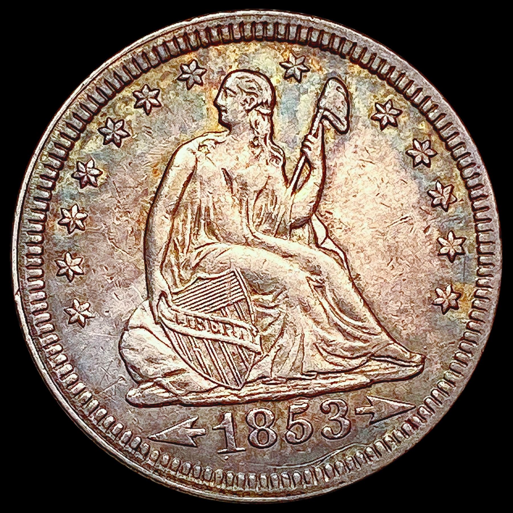 1853 Arr. Rays Seated Liberty Quarter CLOSELY UNCI