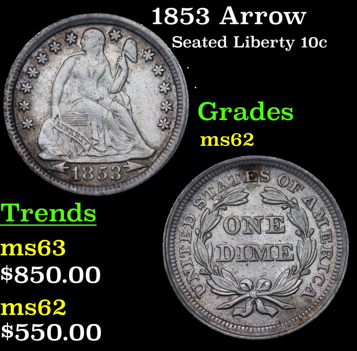 1853 Arrow Seated Liberty Dime 10c Grades Select Unc.