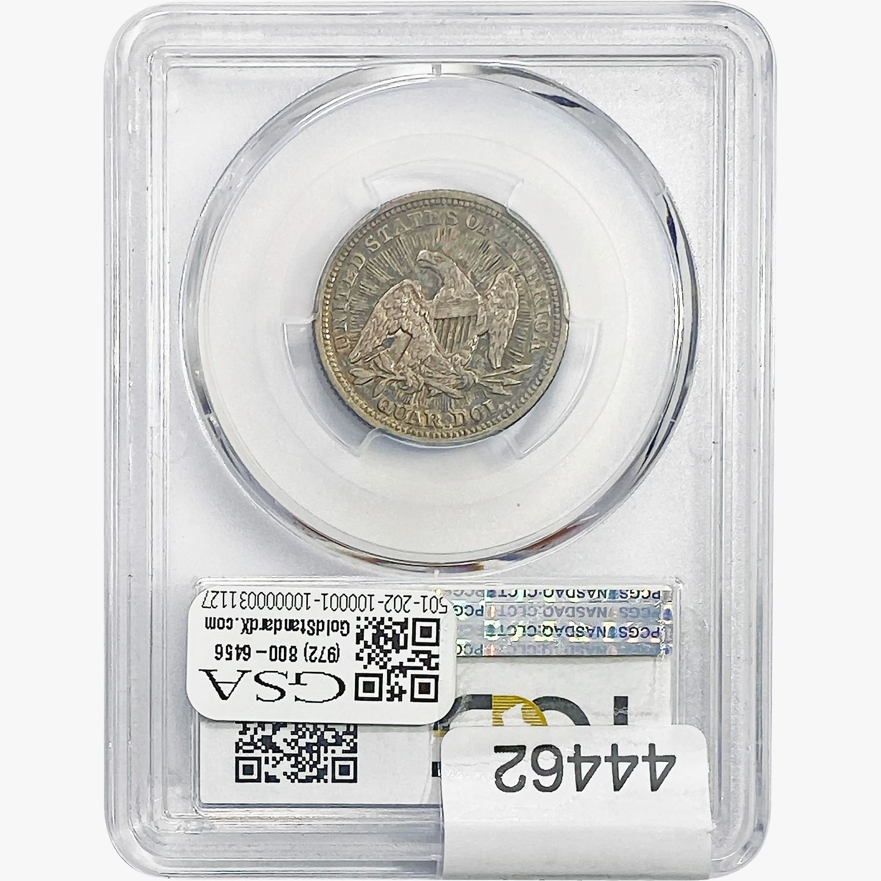 e. Coins sold referencing a third-party grading service are sold “AS IS” without any express or implied warranty, except for a guarantee by GSA that they are genuine. Removal or alteration of the holder, voids all of Bidder’s claims concerning that Product. Certain warranties may be available from the grading services and Bidders are referred to them for further details: Numismatic Guaranty Corporation (NGC), PO Box 4776, Sarasota, FL 34230, www.ngccoin.com/services/writtenguarantee.asp; Professional Coin Grading Services (PCGS), PO Box 9458, Newport Beach, CA 92658, www.pcgs.com/guarantee.html; ANACS, 6555 S. Kenton St., Ste. 303, Englewood, CO 80111; and Independent Coin Grading Co. (ICG), 7901 East Bellview, Ave., Suite 50, Englewood, CO 80111.