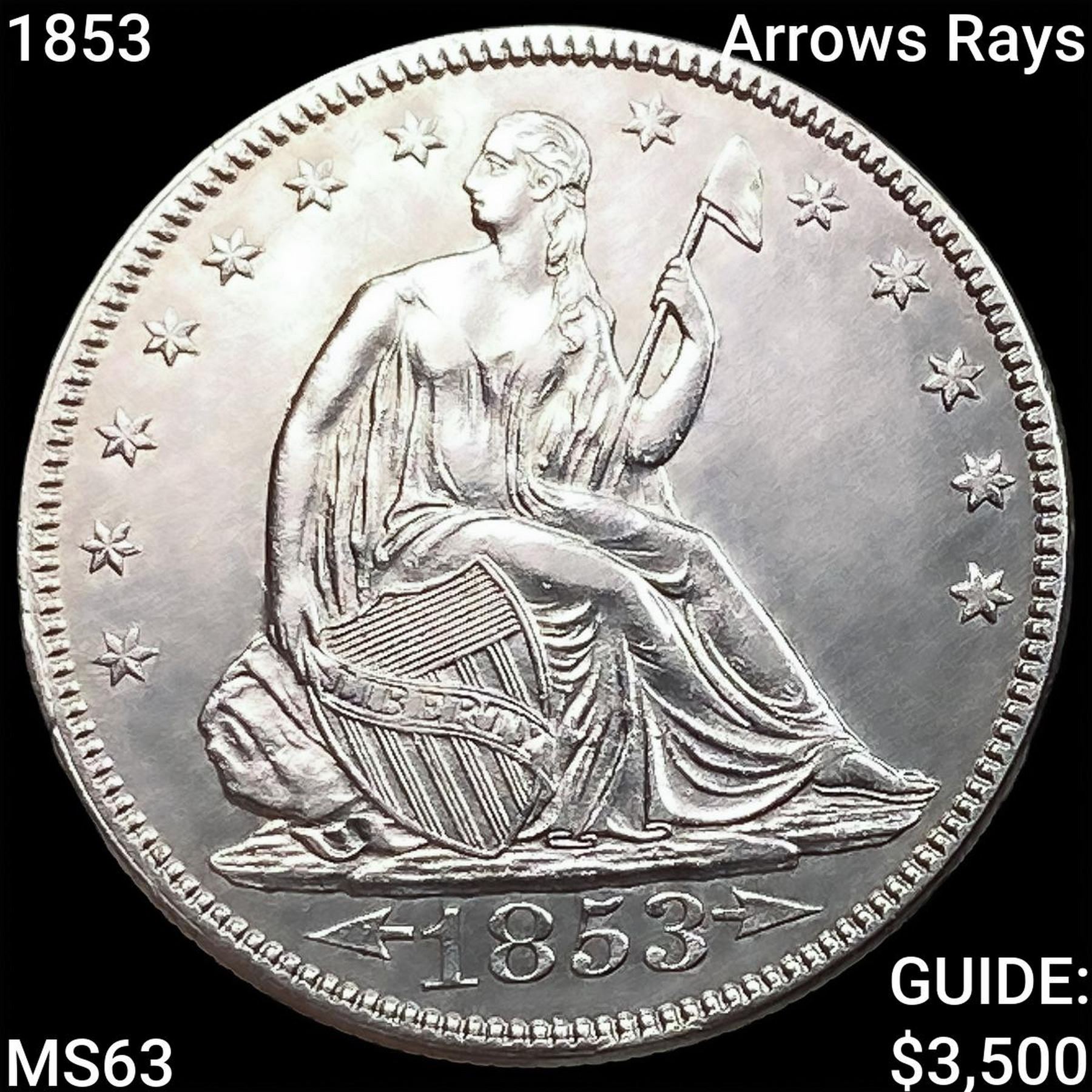1853 Arrows Rays Seated Liberty Half Dollar CH BU